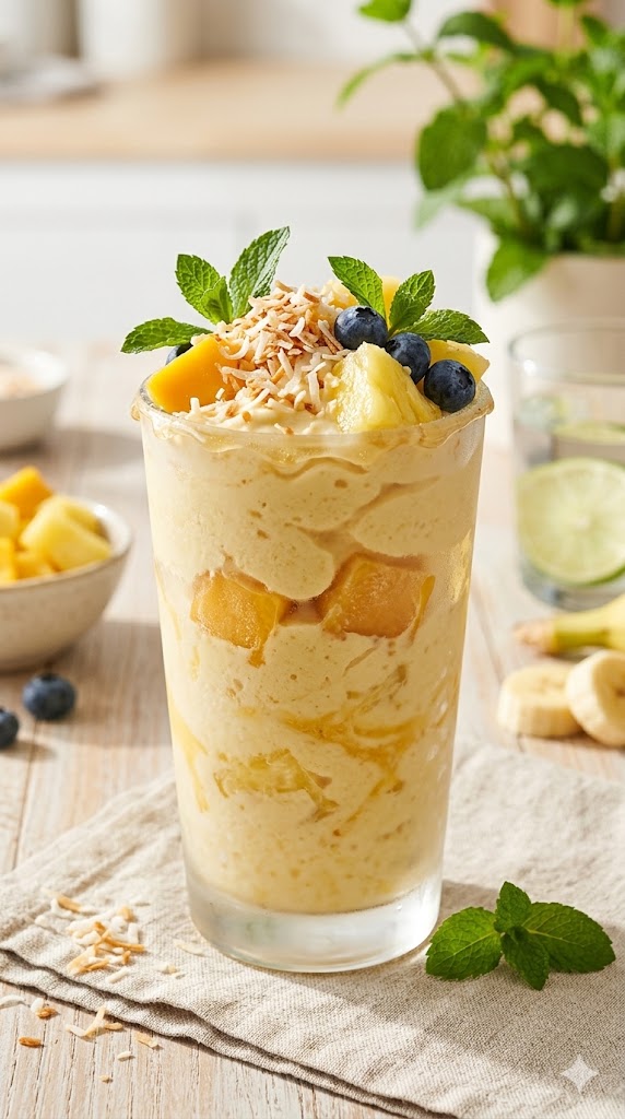 - Donmuş Tropikal Meyve Karışımı (2 su bardağı): Mango ve ananas dilimleri kullanabilirsiniz.