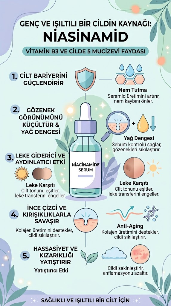 Eğer cilt bakım rutininizi bir üst seviyeye taşımak istiyorsanız, niasinamidin neden “cilt bakımının İsviçre çakısı” olarak adlandırıldığını anlamanızda fayda var. Bu yazıda, niasinamidin biyolojik etkilerinden kullanım ipuçlarına kadar her şeyi detaylıca inceleyeceğiz.